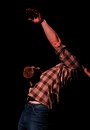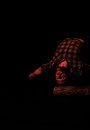 A modern oracle scanning the audience for an unknown force that will ultimately consume him